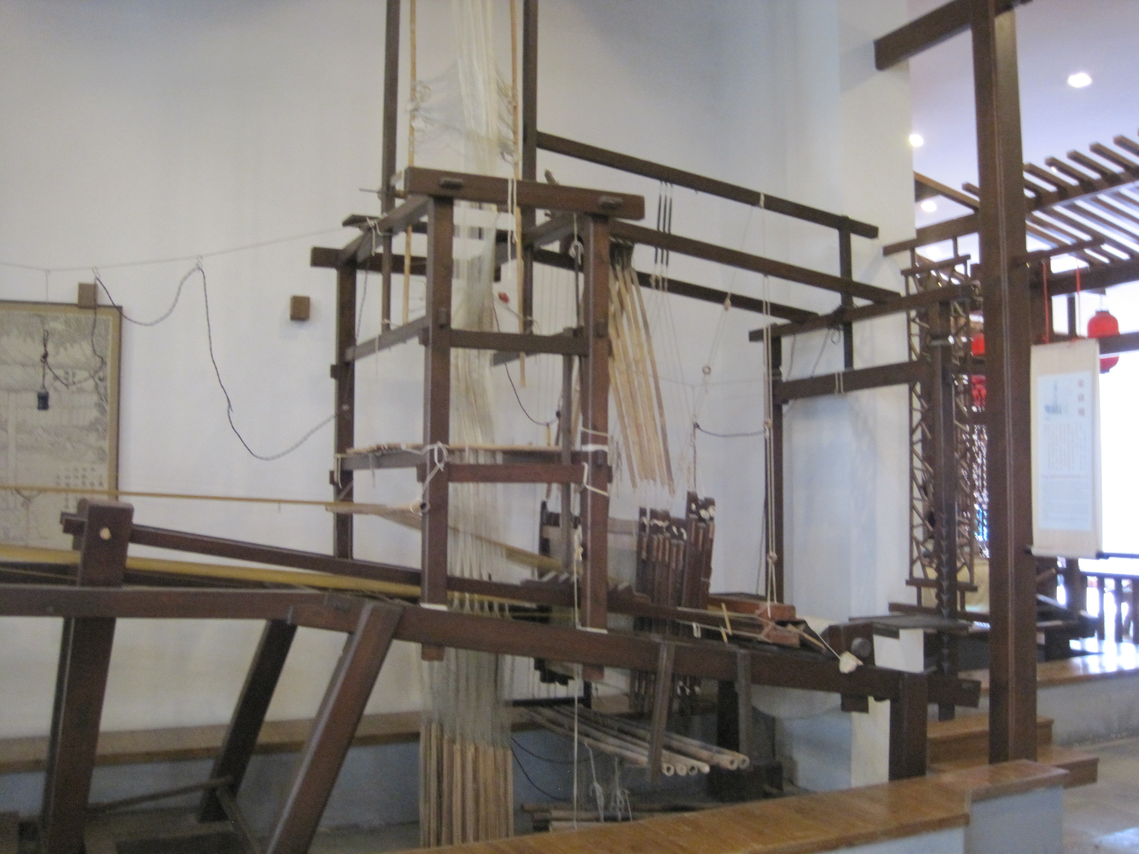 The driver picked us up at the hotel at 9:00 am and then we settled into the van for the long drive to Shanghai, and I fell into a light nap on the way. I woke in and out of napping to see Ron with his I-pad out in map mode, directing the driver to go here, turn there, and I remember thinking, “Surely the driver knows the way to Shanghai, why is Ron telling him which way to go?” Especially since the driver spoke no English and Ron spoke no Mandarin. Imagine my surprise when we pull up in front of the Silk Weaving Museum and Mill. Ron laughed and said he and Maggie and Lucy had been planning this surprise for me for a couple of days. I was both delighted and humbled to have the opportunity to see a real working silk mill as well at the historical museum site, from the moths laying eggs, the silkworms being fed, and the cocoons being spun. The old draw looms were so impressive, and spoke of the precision and care required to create a piece of woven silk by hand.