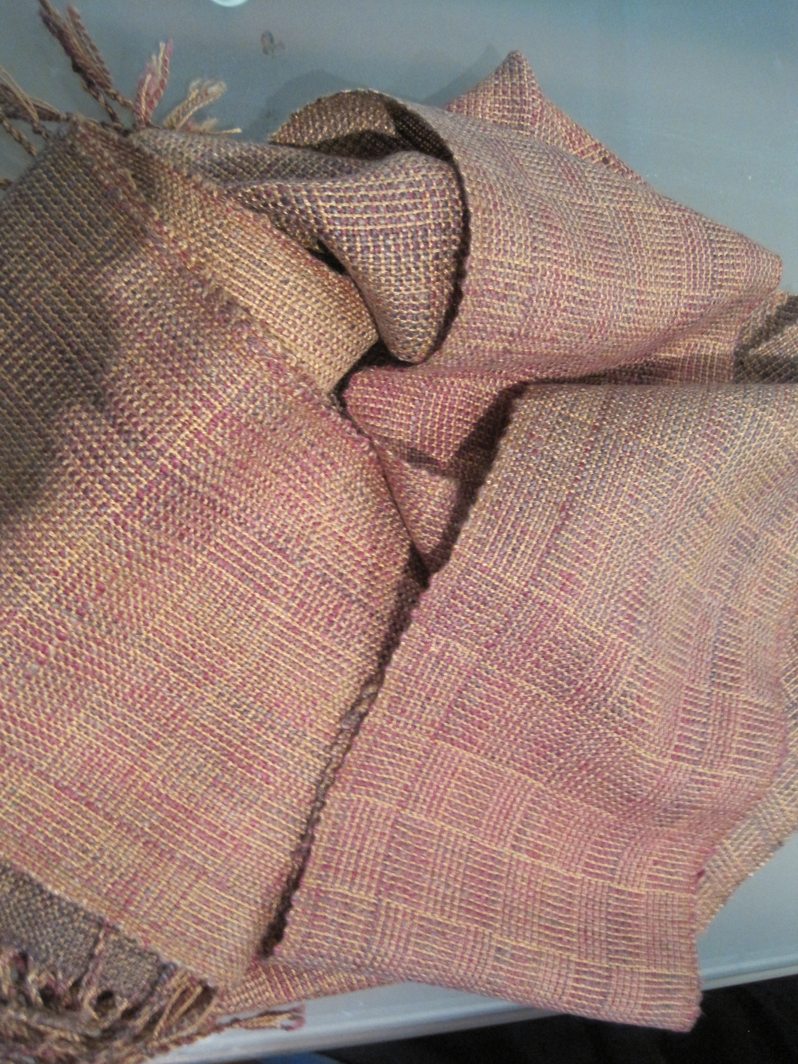 The resulting scarves highlight the handspun yarn, and gently move in colour through the handspun to highlight the reds, then the golden yellows, and through to the browns.