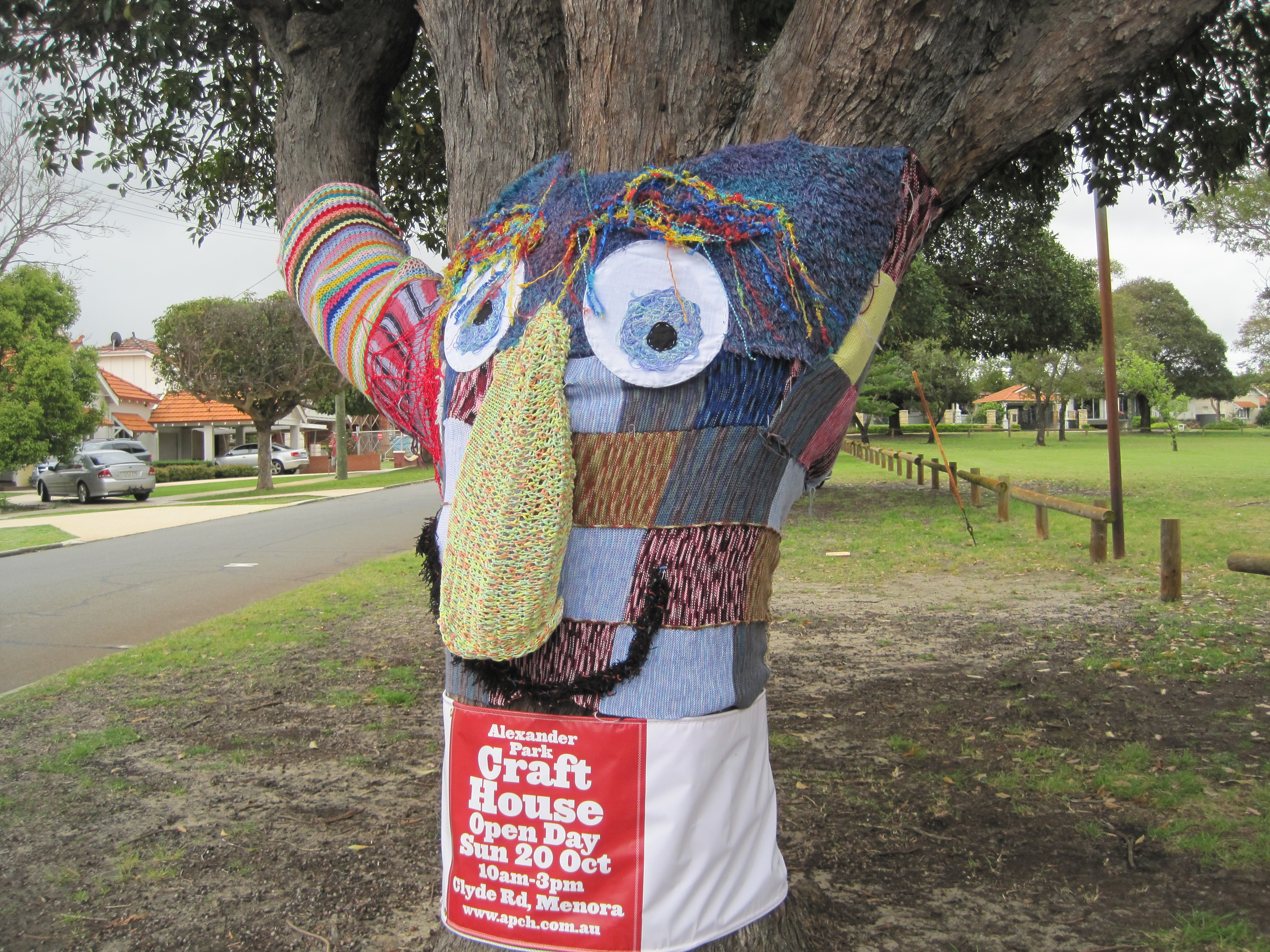 To the members of the Western Australia Weavers, Spinners, and Dyers: Thank you for your open and warm caring and your generosity in taking me in and making me part of your community. I had great fun at the meetings and events, sharing of show and tell, and enjoying great soup and sweets. Special thanks to Sally,Jo, Janet and Sue, and really everyone I met. Getting to know you made my stay in Perth special. The sense of humour of the nameless yarn bombers leads to anticipation of the Open House. Sorry I missed it, hope you all had a great time.