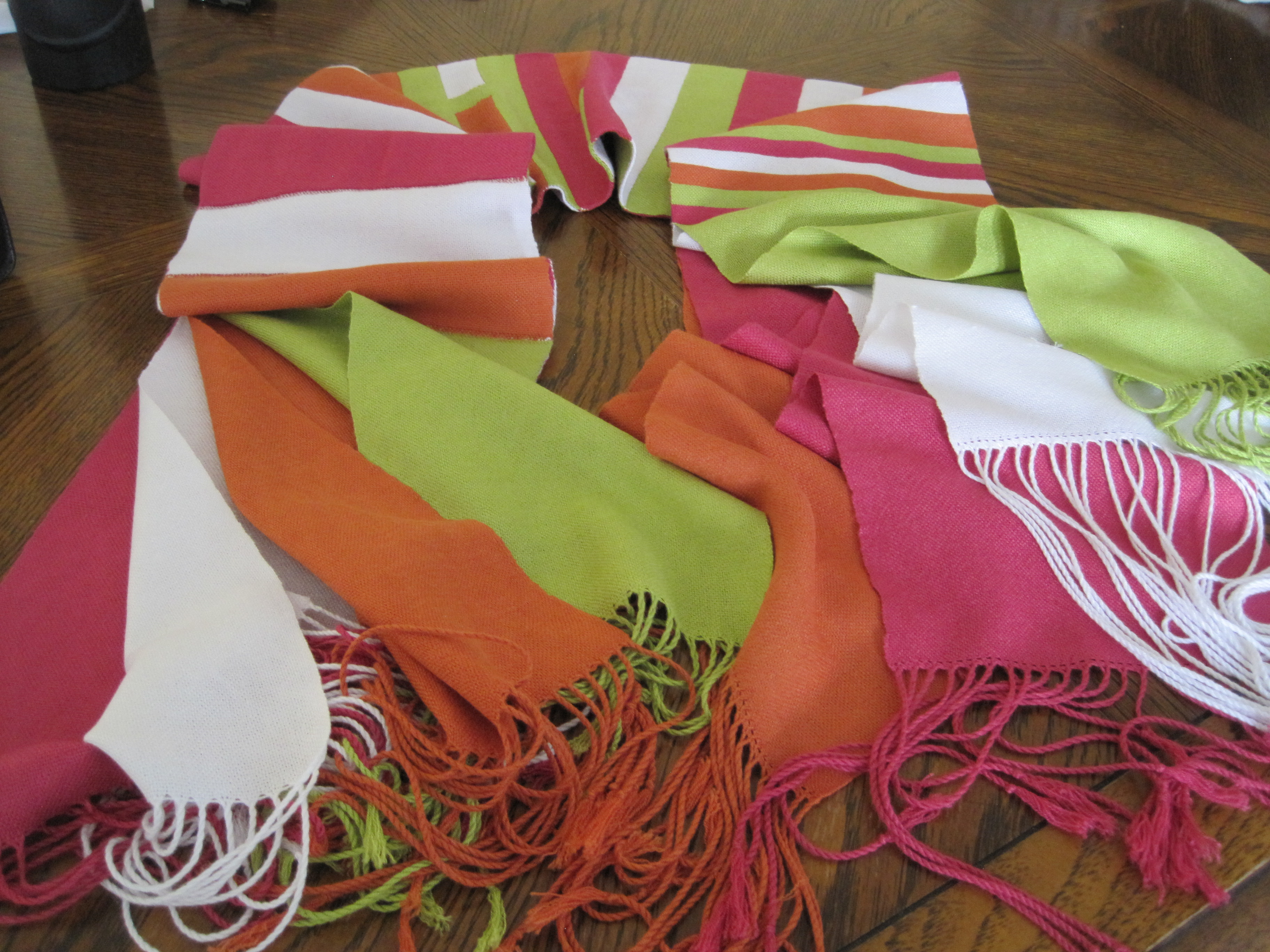 As we move into the last few weeks of summer, and the days begin to get shorter again, I would like to share with you my now completed intense summer project.  A four layer scarf!  A real Tim Horton’s “double-double”!