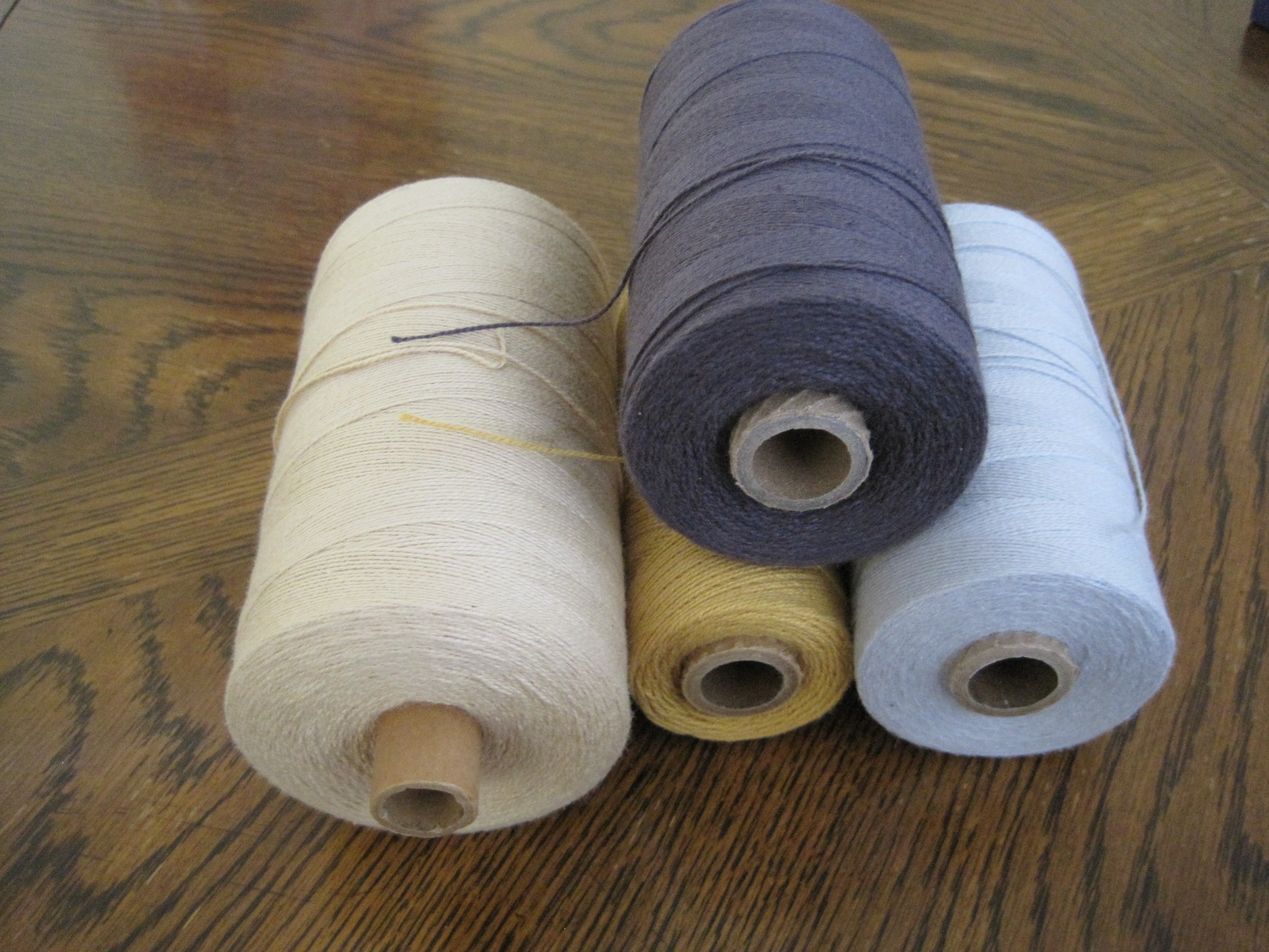Then, through serendipity, I was browsing through Ravelry and came across the Summer Weave Along on the Jane Stafford Group. The picture shown to inspire summer weaving is a beautiful beach scene, with water, sand, clouds and grasses. That’s it! I cried. So these colours from my shelf are going in to the towels. Light sand colour for the beach, gold for the golden sunlight, grey for the clouds, and a light blue grey for the water and sky.