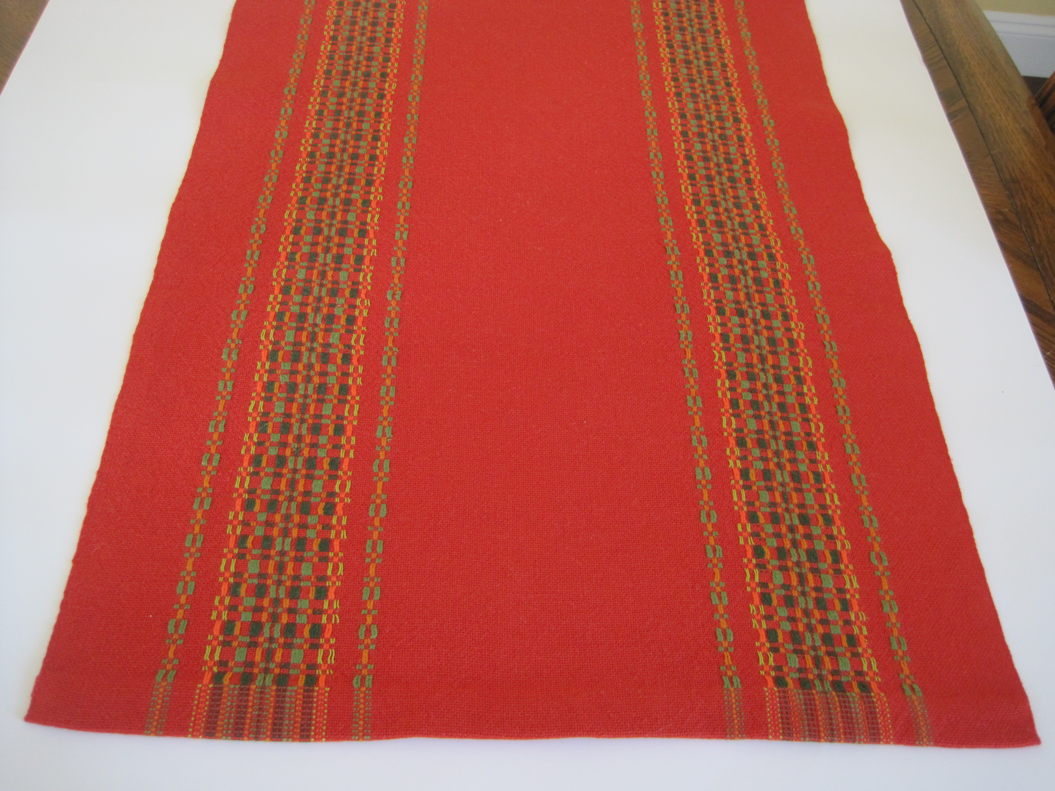 Easy weaving, in Turned Monk’s Belt, since all the work is in the warping.  Once on the loom they wove up quickly and it was an easy pattern to follow.  I set these towels at 20 epi, which makes them a little heavy for tea towels.  If I were to do it again, I would adjust the sett to 18 epi, and adjust the striped pattern accordingly, because I still like the proportion of pattern to background.