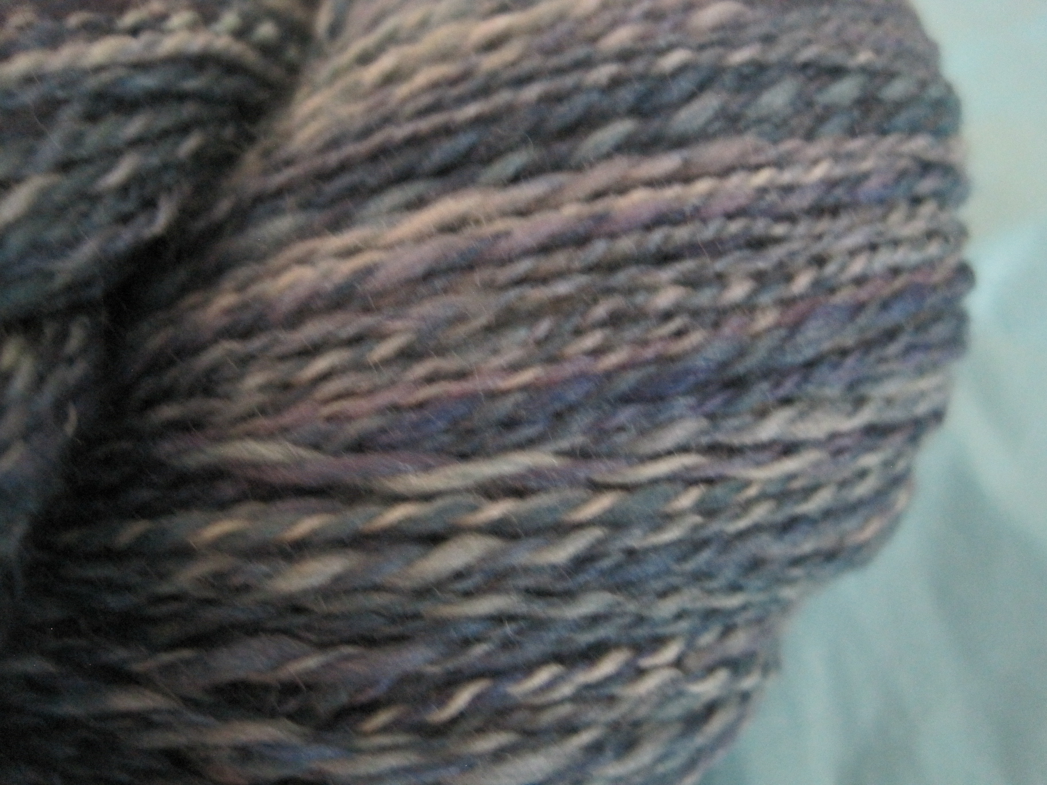 This 119 gm skein of “Denim Dreams” is 557 yards long, and took 14 hours to spin – lots of time for dreaming. I plan to weave a comfortable scarf or shawl to wear with my jeans.