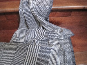 Hours of experience – designing, measuring warps, sleying, threading, tying and winding on, weaving, hemstitching, finishing, pressing and ironing, sewing hems, twisting fringes: approximately 500 intense hours.