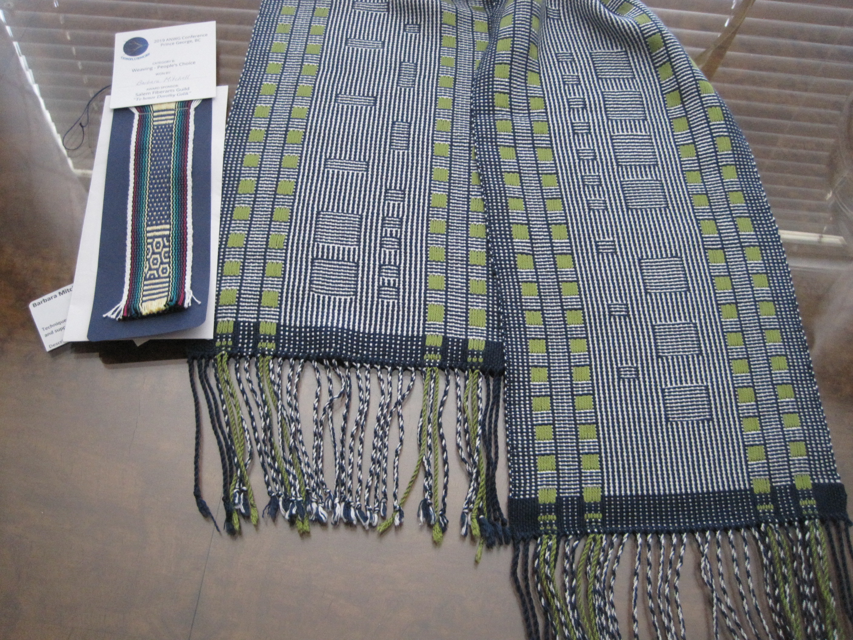 I won the People’s Choice Award for Weaving, sponsored by the Salem Fiber Arts Guild for this piece-