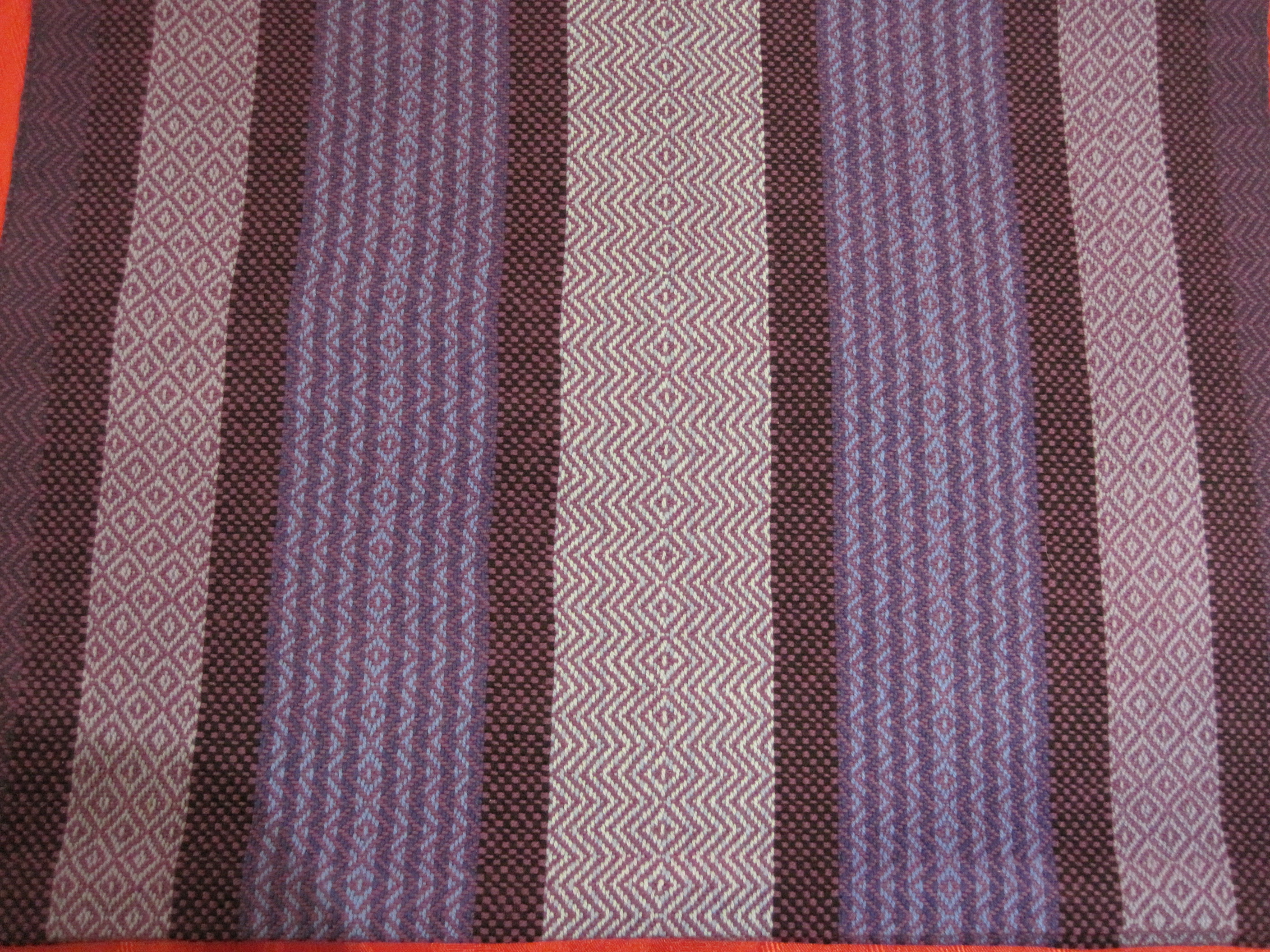 Changing colours, I used up more partial spools. This one has light purple as weft.