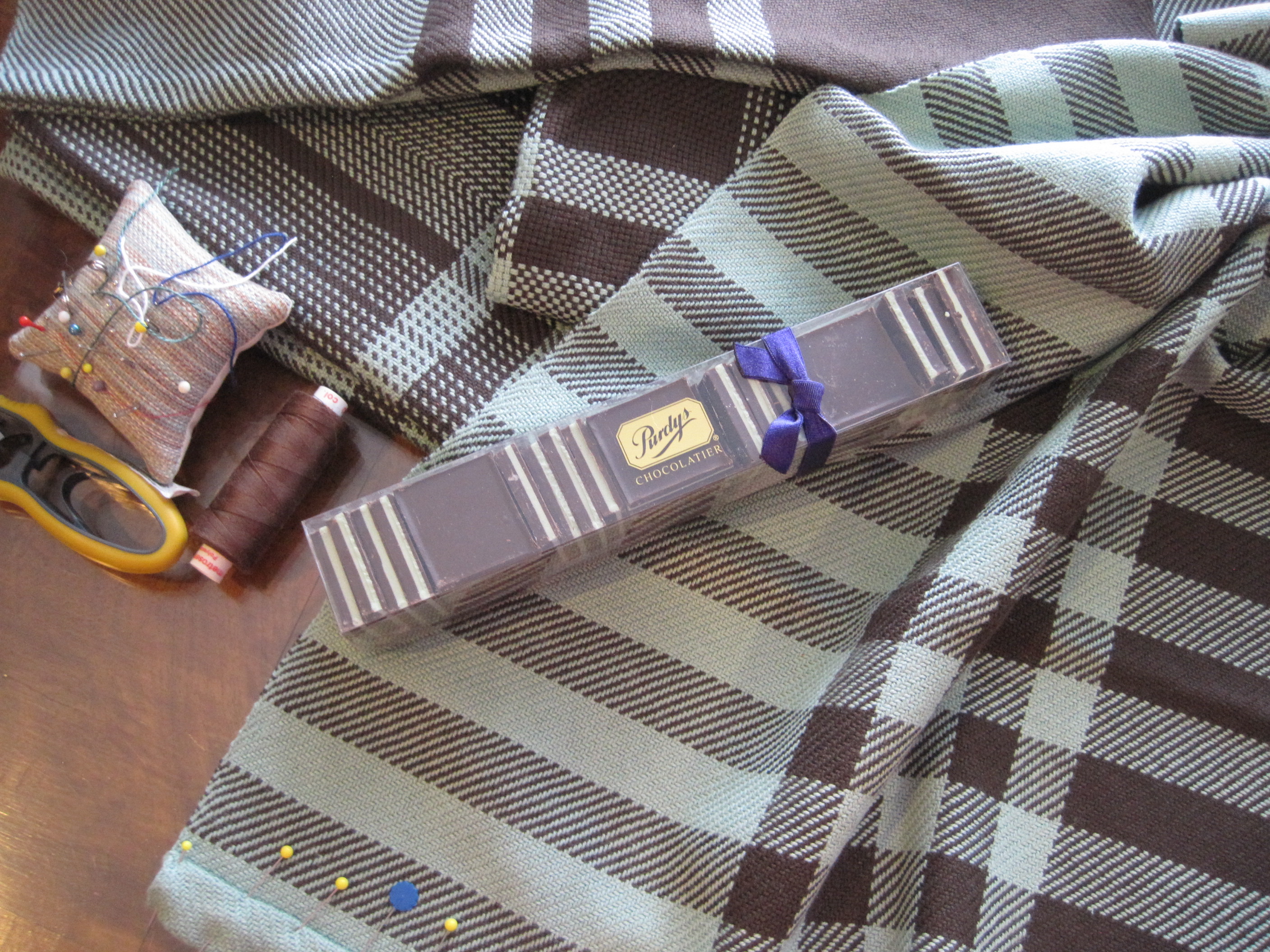 Chocolate Mint Tea Towels, inspired by chocolates, and waiting to be hemmed.