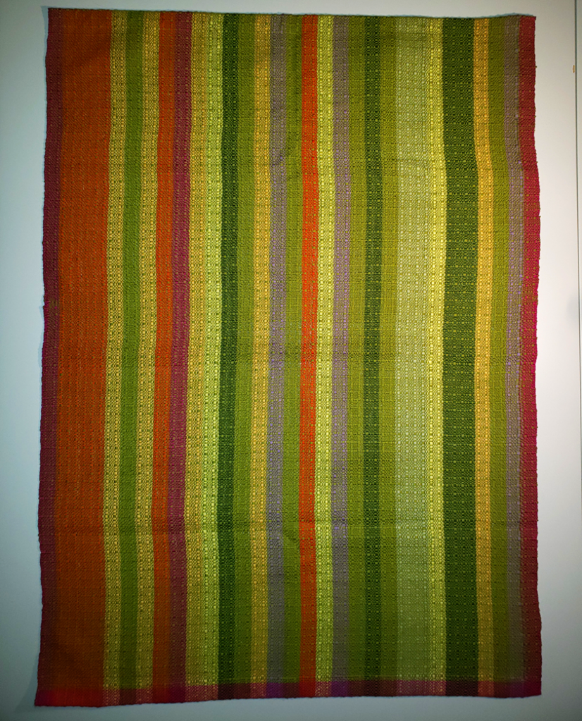 For towel #4, I mostly worked with a stripe repeat of dark green, medium green, light green, with a couple of apricot stripes at each end.